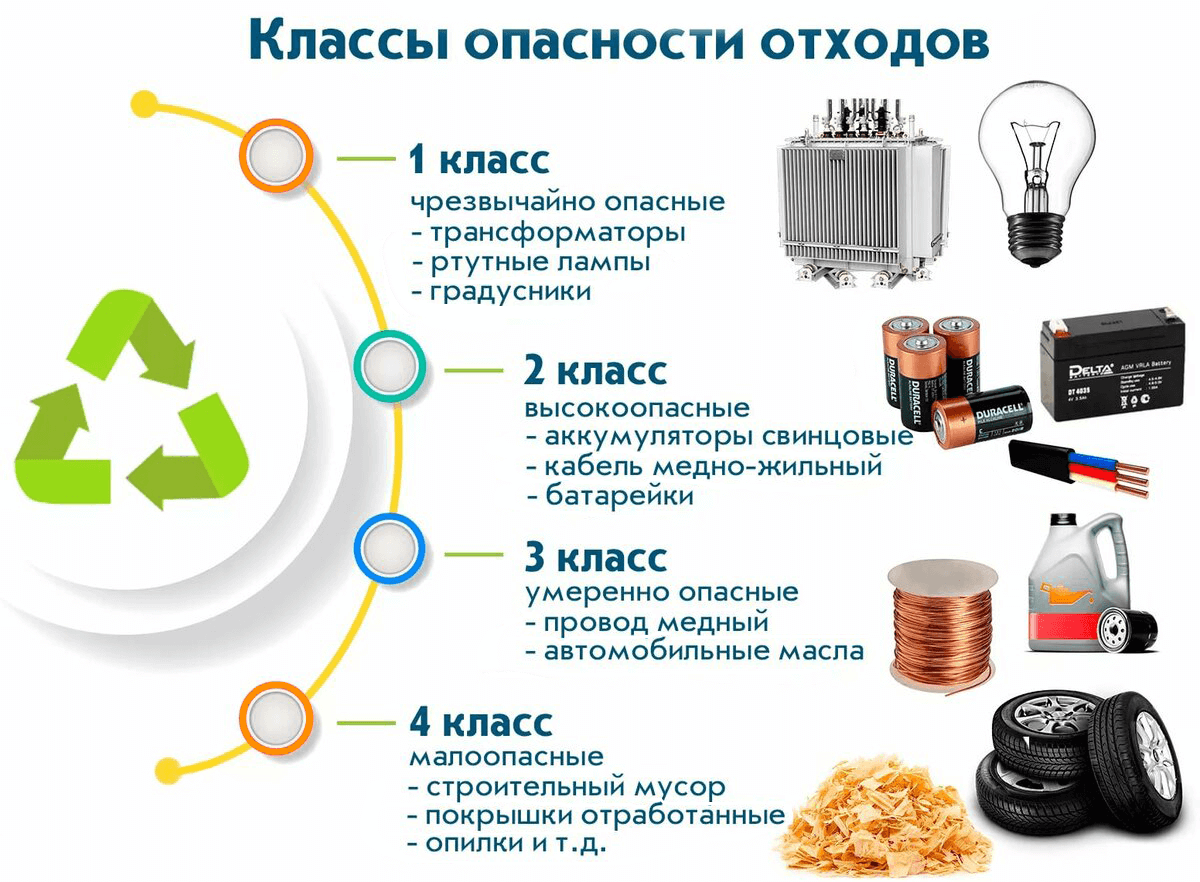 Существует несколько видов лицензий на обработку отходов, включая лицензию на обработку отходов 1 - 4 класса. Классы отходов определяются в зависимости от их опасности и степени воздействия на окружающую среду.