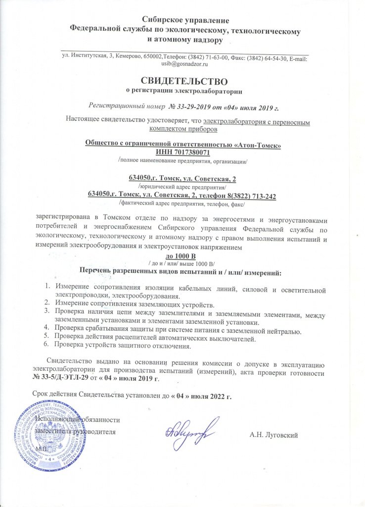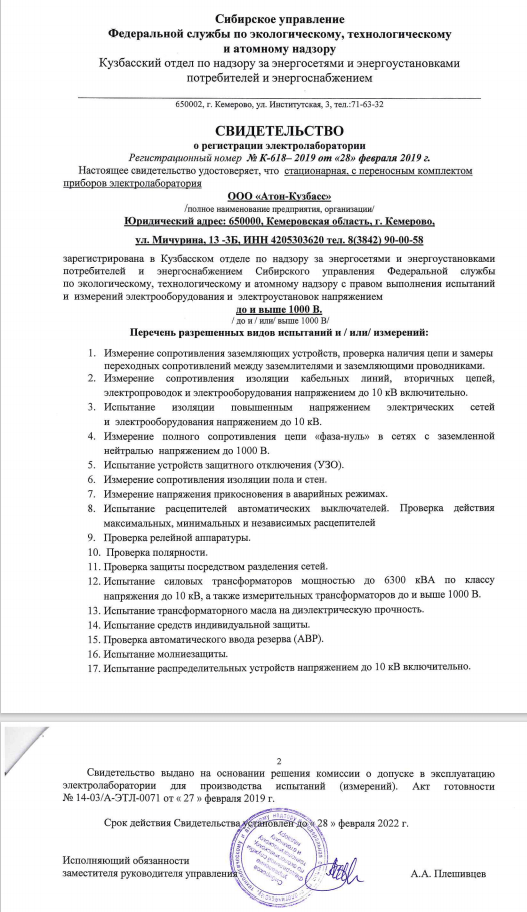 Услуги аккредитованной электролаборатории до и свыше 1000 В