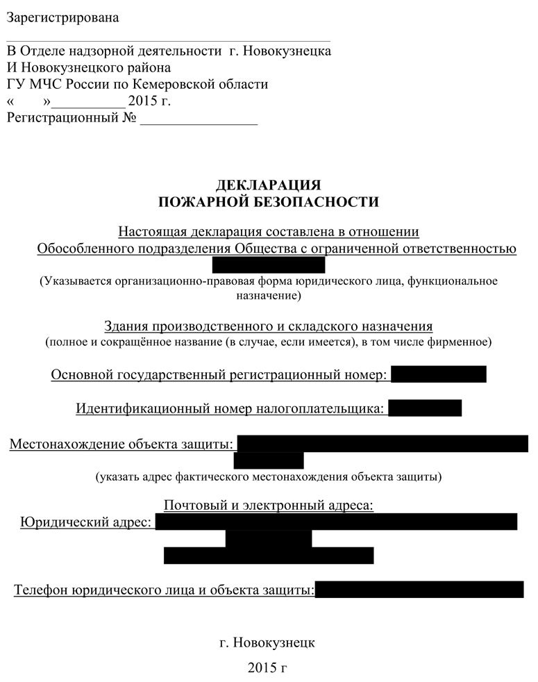 Декларация пожарной безопасности действительна на протяжении всего времени функционирования объекта. При необходимости проводится ее повторное оформление: